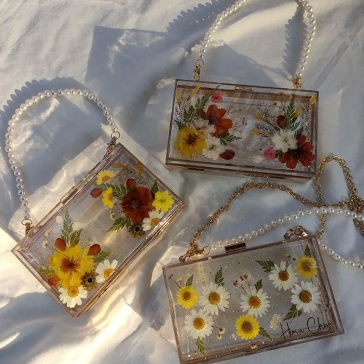 This transparent resin handbag is adorned with vibrant dried flowers and features a personalized golden name charm, combining floral elegance with functional fashion. With its gold chain strap and artistic layout, it’s the perfect statement piece for gifting or accessorizing with flair.