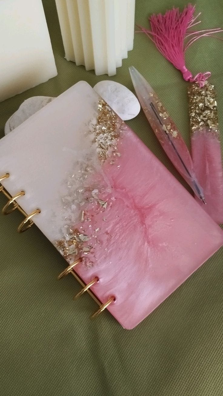 This handcrafted resin set includes a stylish diary, matching bookmark, and pen—blending beauty with function to make every thought, page, and gift moment extra special.